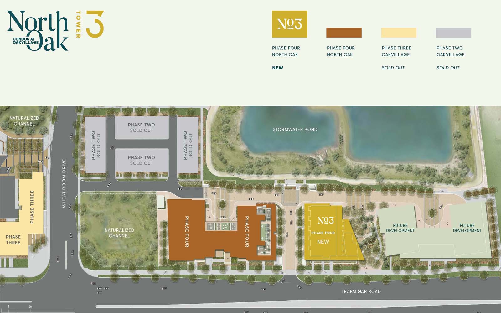 North Oak Condos 3 at Oakvillage is the second phase of the new condo development. This project is developed by Minto Communities while located at Trafalgar Road and Dundas Street East. There are two towers that are connected by a 2-level podium, as well as a shared amenity program.